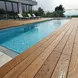 Применяется для обустройства террас, открытых площадок, веранд, площадок у бассейнов и естественных водоемов, садовых тропинок, на пол в банях и саунах, мостков на набережных.
