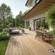 Применяется для обустройства террас, открытых площадок, веранд, площадок у бассейнов и естественных водоемов, садовых тропинок, на пол в банях и саунах, мостков на набережных.